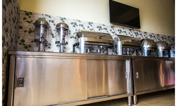 酒店为您在客房内配备了国际长途电话、空调和液晶电视机,所有入住的客人均可便捷的使用。有饮水需求的旅客,酒店还为您提供了电热水壶和瓶装水。浴室内提供拖鞋、24小时热水和吹风机,让您感受到宾至如归的享受。旅客可以在酒店的中餐厅中挑选自己喜爱的风味美食。