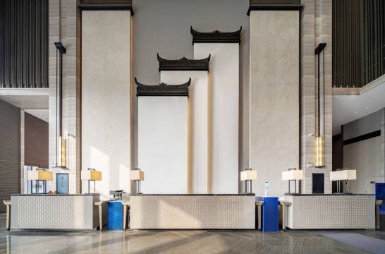 酒店位置很醒目,徽派建筑很有特色。交通便利,停车方便。前台Mia办理入住高效快捷,服务非常好,房间干净卫生,湖景房景色优美,视野开阔。环境优美,设施齐全,吃喝玩乐都有,下次还会来入住。