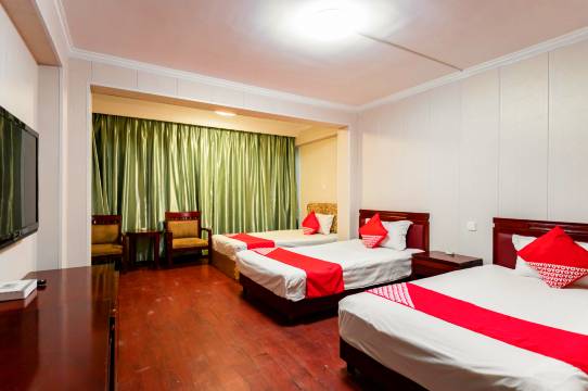 房间很大,大概有40平米。进到房间里没有一点怪味道。卧具稍旧,但是洗得非常干净。卫生间里热水很好,洗澡很方便。周边交通便利,去各个景点都有公交车直达。有小吃店,很便宜。特别是老板夫妇人很好,很热情,把我从火车站接到店里。这次入住体验非常好,再次感谢老板,祝你们发大财!
