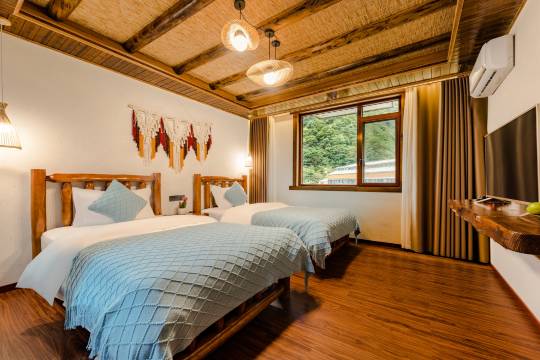 房间宽敞整洁,非常有地方特色,住着很舒心,一楼就是饭店,老板店员都特别热情,主动帮我们拿行李,吃饭时店员也笑盈盈的,会问用餐体验听取我们的意见,特别耐心。菜品特别好吃,分量很足很值这个价,吃了两顿都很不错,特别推荐!