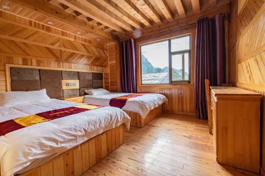 意外之喜,因为景区人少,老板直接给升级到高级房了,所以无论是面积还是景色都比定的上了一个level了,设施和卫生都非常ok!
