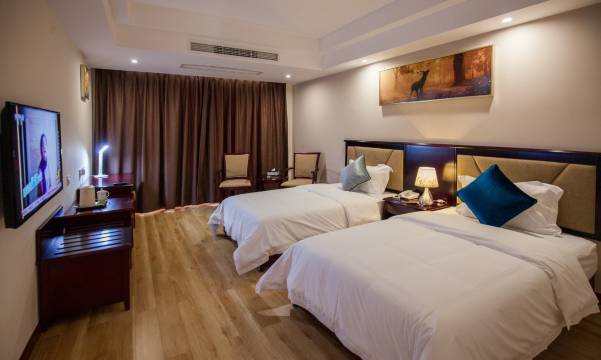 酒店为您在客房内配备了空调、液晶电视机和房间内高速上网,所有入住的客人均可便捷的使用。有饮水需求的旅客,酒店还为您提供了电热水壶和免费瓶装水。浴室内提供拖鞋、24小时热水和吹风机,让您感受到宾至如归的享受。旅客可以在中餐厅享用可口的美食。如果旅客愿意,酒店可以提供满足需求的客房送餐服务。