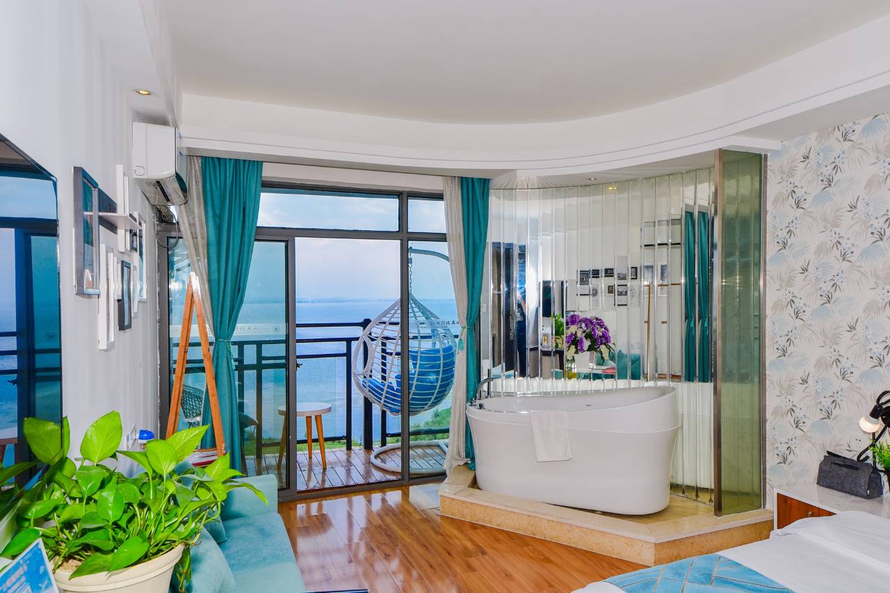 房间和网上的图片一摸一样,有个阳台客栈看海,视野很好,傍晚到楼下的海边走走,凉风习习,非常舒服,也很漂亮,客栈位于环海东路上的一个小区里面,去环海东路很方便,老板推荐的最适合的交通工具骑个电瓶车,去逛环海东路,在环海东路的文笔村看日落,别提有多美了,去机场和高铁站也很近。