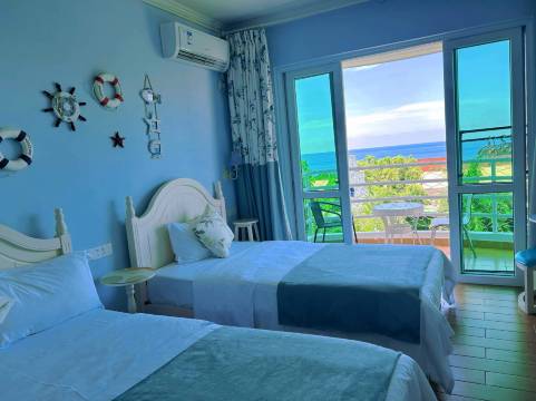 客栈是一家地中海风格主题客栈,毗邻大东海。超大海景亲子房、大床房。阳光、沙滩、碧海都能一览无余。温馨、淡雅、舒适是我们的服务理念,客栈竭诚给您家的温暖!