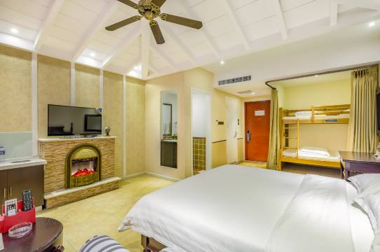 酒店的外观和内装综合了地中海及美式乡村的设计风格,为您精心打造独特的异域风情体验,酒店同时配备了具当地特色的“崇味餐厅”、KTV、小影院、温泉、棋牌室、儿童玩乐中心等各类休闲娱乐美食设施,让你在度假时放飞自我,随心所域。