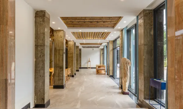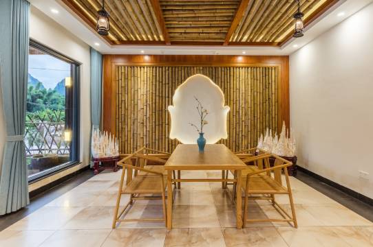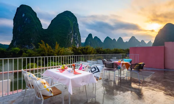 千年繁衍下的渔村,民风淳朴,鱼虾水产种类丰富。酒店距离漓江直线距离不过百米,整个建筑为桂北民居风格改造,使用LOFT与原生态竹木工艺打造,掩映在凤尾竹与山峰之间。