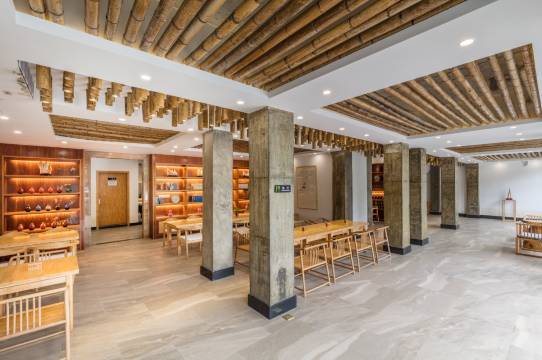 在大厅自然返璞的空间里为你窖藏自酿上好的桂花酒、茉莉花酒、青梅酒、野生葡萄酒花果酒以及精致点心,令人沉醉于云山水岸。