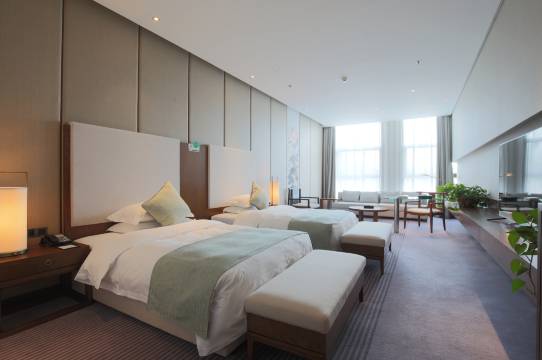 这个酒店完全惊艳到我了,虽然位置稍微偏一些才提供了这么幽静宜人的环境。推开房门就是各种博物馆展品。房间很大,床品也很舒服,因为到的比较晚就叫了房间送餐服务,量大味道也好。早餐也很丰盛,自制的香肠味道好极了。服务人员也很热情,会帮忙拎行李送到房间。退房还让小朋友玩了套圈游戏,送了盘锦大米。吃过早饭到园区里面溜达,江南风情的建筑和翠霞湖,特别适合放松身心。有机会还会再来!