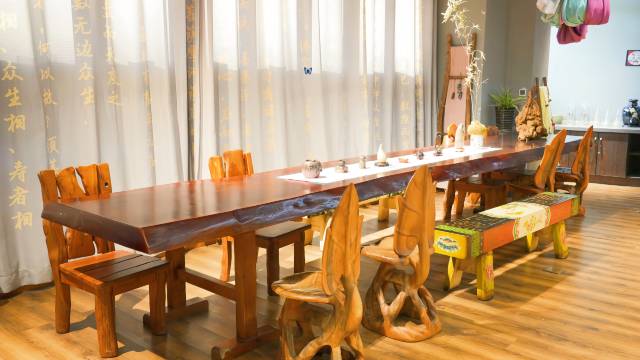 我们回归初心,打造返璞归真的禅茶酒店。古典的不同风格的实木家具、茶具给您的生活增添多一丝丝的味道。客房一应俱全,采光通风好,自由舒适度高。希望您来到这里,依然可以找到回家的感觉。房间均配有厨房,楼层均设有会客室,整层禅意会所,并设有会议室,公共洗衣间,茶室,桌球房,乒乓桌,无人售货机等设施。临河塑胶步道,24小时开放利用。