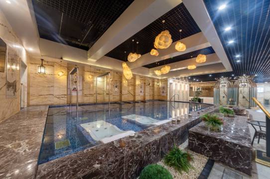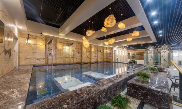 这是一座性价比极高的酒店,将住宿、餐饮和泡温泉完美结合在一起,让顾客得到了超值享受。酒店地处闹市,停车方便,交通便利。房间面积适中,设施齐全,卫生很好。住宿不仅带早餐,还送温泉票,而且温泉水质干净,各种泡池齐全,搓澡桑拿服务具备。自助餐才40元一位,品种丰富,价格公道。总之,这是座为数不多的超好酒店,值得回头光顾,也值得给五星级点赞!