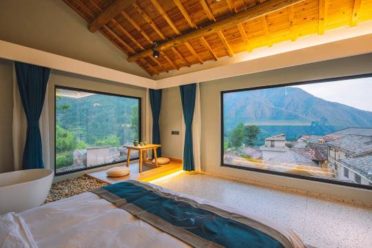 民宿和房间设计得太有品味了!原木风搭配落地窗,床品柔软得像云朵,细节处处能感受到主人的用心。最爱那个茶室,泡一壶茶看山间云卷云舒,和三五好友打牌玩闹,什么烦恼都消散了。老板和管家小姐姐超级暖心,早餐也惊艳。