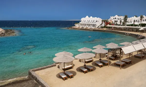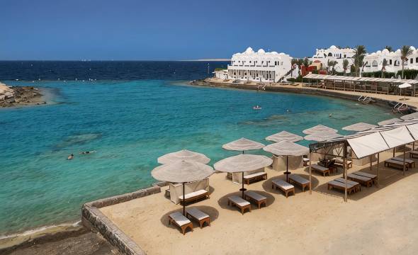 这个度假区真是超出预期,没想到埃及也有类似东南亚这种度假式的酒店,配合红海优质的海水条件,真是很不错的体验。酒店坐落红海边上,我们坐GoBus 到赫尔格达,打车到酒店大概3公里多,10来分钟的路程,酒店安保也好,进去出去的车或人都会确认下身份,酒店外有商业街,餐饮、超市、商品店都有,酒店本身有沙滩(应该算泄湖区)、两个泳池、浮潜区,还有各种设施及活动,感觉完全不需要出酒店,另外价格是一价全包,没有额外消费的地方,整个酒店以白色色调为基础,非常有设计感,很适合拍照