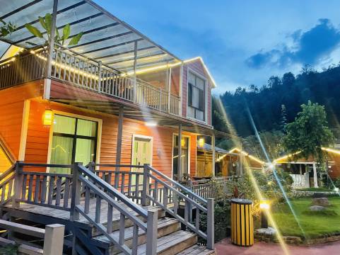 这个地方很好,很适合亲子出游,在一个山谷里面,有山有水有温泉,住在两层的木屋里面,很有感觉,而且里面有小孩子玩的儿童乐园,儿童乐园在河边的大草坪上小孩子能一直玩非常开心。里面也有充电桩可以充电,有一个吃饭的山庄,食材非常新鲜美味好吃。住在这里可以开车去附近其他景点去玩,开车走盘山公路很有感觉。