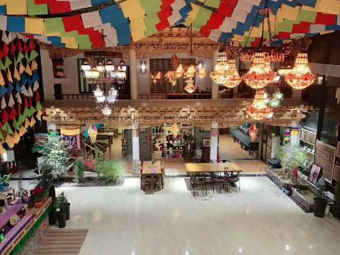 当你穿过充满藏式传统木雕装饰的藏式大门,首先映入眼帘的是装饰精湛纯手工木头雕刻大堂,大堂陈列典雅不失大方,华贵不失精致。大堂艺廊精心布置了众多藏式展品,如两尊年代已久远唐卡和古老的藏族手工艺品,使您沉浸于领略纯粹的藏族文化、青海风情之中。