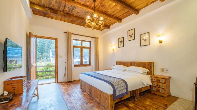 适合亲子出行。环境优美靠近景区,装修复古田园风。早晨起来可以看到静谧的山景。