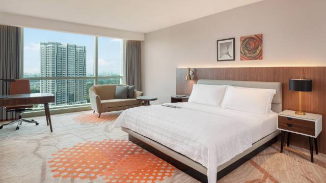 布特拉再也艾美酒店用卓越的服务、现代化客房和别具风情的设施用品,缔造豪华旅行体验。我们的布特拉再也酒店地理位置优越,邻近众多企业办公地、布特拉再也国际会议中心和 IOI City 购物中心。驱车片刻可达吉隆坡国际机场。酒店客人可乐享我们的充满活力的室外泳池和儿童泳池,以及 24 小时健身房。欢迎光临我们的餐厅,尽情品尝美味可口的当地和国际特色佳肴。酒店拥有 19 处活动场地,从董事会议室到宴会厅均可提供,每处场地均提供专业餐饮服务以及先进的视听技术保障,是策划各类活动的理想之选。前往 IOI City 购物中心探索,然后回到酒店客房,尽享 Le Méridien 特色防过敏床上用品、大理石浴室、大型办公桌、免费 Wi-Fi,透过落地窗,还可欣赏高尔夫球场的迷人风景。入住行政楼层客房和套房可享行政酒廊礼遇。套房内设宽敞的起居室,是与家人在马来西亚布特拉再也娱乐或放松的理想之选。