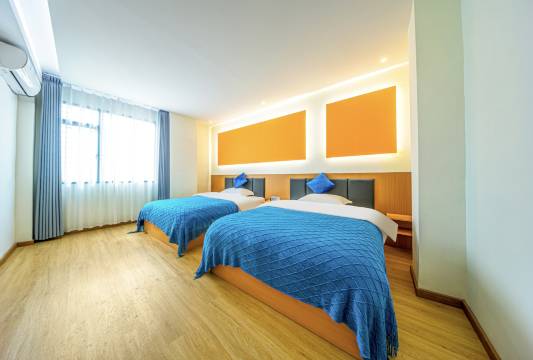 酒店新装修的环境漂亮,酒店用的是隔音玻璃,隔音效果很好,晚上睡觉特别安静,还有自助洗衣机,和衣柜,投影仪很大很清晰,有啥问题打个电话,前台就立马过来解决,价格优惠,体验感很好