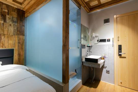 客栈内外装修以木头和鲜花非常自然,给人安稳平静的感觉,有电梯洗衣服房,床垫很舒服,孩子挨着枕头马上入睡,还有全自动马桶。