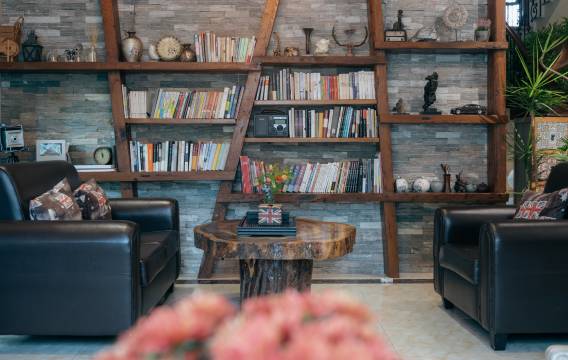 缦园居于莫干山深幽之境,僻静雅致,崇山峻岭环抱,又有茂林修竹衬景,是度假休闲的好去处。远离喧嚣烟火但不与世隔绝,几条小径与周边景点相连,方便自驾出游,由市中心至民宿,竹林愈加茂密,寻幽探胜之感油然而生。客店夫妇热情好客,中西方佳肴美酒俱备,厨艺高超,还会分享调酒、做咖啡的小知识。客栈内设有图书角、棋牌室、游泳池、酒吧、滑梯……即便足不出户,也悠然自得,纵享无案牍之劳形的逍遥自在。