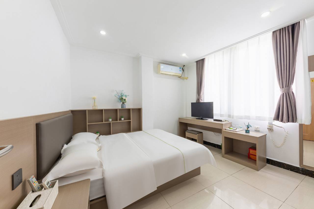 来这边找同学玩,再携程随便找了一家酒店,住了一晚上订了这家酒店服务真的非常好,态度也很让人感到很棒,房间卫生也干净整洁简单,床也舒服,位置也很好找,从古苠奶茶下来就是,也不吵很安静下次来这边玩还住这家,而且这个价钱也很便宜划算,旅游的话也可以来这家酒店入住,真的不亏