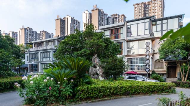 花筑·张家界香颂美墅客栈(天门山店),位于张家界市永定区南庄坪,一个绿树成荫的别墅小区【山水豪庭】里。