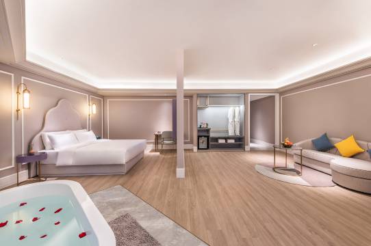 酒店大堂飘逸着蓝色风信子香味,茶香和果香的融合味道清冽自然,仿佛置身爱丽丝的之境。将属地化的特色融入设计和体验里,天然兼具商旅与旅行属性,是城市探索必住的中高端酒店。你可以从充满设计感的大堂、走廊的细节、房间窗外的风景,感受这一座城市的韵味。