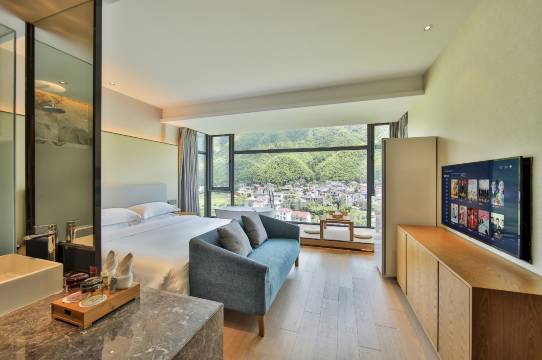 酒店采用独特的分栋式客房设计,拥有宽敞的客房,雅致的套房数十间,客房与四周的优美自然环境交相辉映,大多数客房均可欣赏山水相拥,竹影环绕的绝美景观,其中部分客房还设有私人阳台,即使身处客房也能充分感受自然气息。