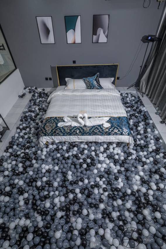 宾馆位于杨林镇正街,有轻奢风,日式,新中式,复古风,海洋球等装修风格,部分房间带浴缸,有露天休闲阳台