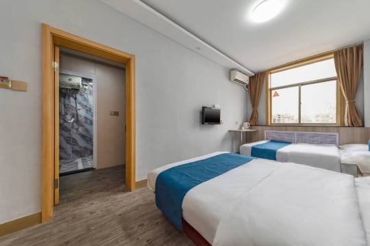 订的是套间,适合带两个孩子出游的。酒店位置就在八大局市场正门口对面,很方便,前台小姐姐很热情的帮忙到停车场开锁,询问附近景点美食也积极讲解,感谢🙏店内没电梯,要提着行李步行爬三楼,房间内干净,设施齐全,总体性价比高!