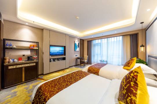 应该是县城里面比较豪华的酒店了。各方面的设施卫生都还很不错。酒店的床睡得也很舒服。在县城里有这样的话已经是很好的酒店了。就是早餐。看着很豪华。就是寻不到一丁点的肉出来。牛肉面吃完了也没找到牛肉。咖啡也很难品出咖啡味道的出来。天成这个价格的酒店这种情况还是不值得的。