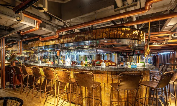 很神奇很有意思的酒店!不仅外观是大船,内部装修装饰也都是大船主题。入住时前台特别nice升级到了景观大床房,270度都是郁郁葱葱的园林视野好极了。酒店内部各种娱乐设施都有,特别惊喜地还有一个精酿啤酒吧,真的是酒店自己机器做的精酿,点了黄啤和黑啤都很不错。酒店早餐也很丰盛,我们坐在泳池旁景观位吃饭别有一番风味。