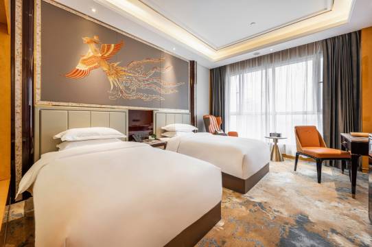 通过携程预定的豪华标间,总体非常满意,物超所值!我们一家两大两小,客服暖心地送来了拖鞋,两娃的自助早餐也免费。位于市中心,临近五一街夜市,设施智能、环境卫生、服务贴心。
