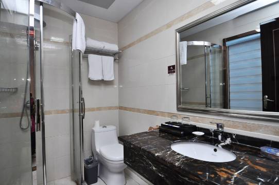 酒店对客房的装饰十分考究,每间设施齐全的客房都配备有空调、液晶电视机和房间内高速上网。服务人员会提前为您准备好电热水壶,以满足您的饮水需求。浴室配有拖鞋、24小时热水和吹风机。