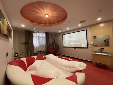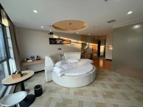 酒店临梦湖而居。幽静的梦湖河畔,空气清新、停车方便。除麻将休闲房和精品双床房外有多间特色主题客房,每间风格迥异,别有一番韵味。有圆床、方床几种风格的电动按摩床,还有冲浪大浴缸(配备一次性浴缸套干净、卫生)。wifi全方位覆盖、4K高清100寸无线大投影(高级会员免费观影),中央空调普及每个房间、热水全天供应、采光好、卫生干净、服务周到,带给您归家的温馨浪漫。很适合夫妻、情侣、恋人旅居,每逢情人节、生日、纪念日······这里是您的休憩之地,竭诚欢迎您的归来!经过一座城,寻觅一间房,消去您满身的疲劳,我们将以热情的服务,舒适的房间,期待您的到来。我们,在这里,等您来。