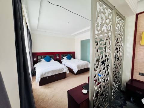 这是一家藏地精品连锁、以藏汉特色装饰融合、集客房、餐饮、会议、商务中心于一体的综合性酒店;客房内中央空调、加湿器、电子秤、飞利浦电视、高速WIFI等配套齐全,拥有各类客房;可容纳约50人同时就餐的早餐厅,给您带来味觉上的满足;容纳约40人的会议室,功能齐全,可满足您不同的商务需求;酒店以温馨、舒适、安全、美食、环保为经营特色,特殊的地理环境及热情周到的服务是您的佳选之地。