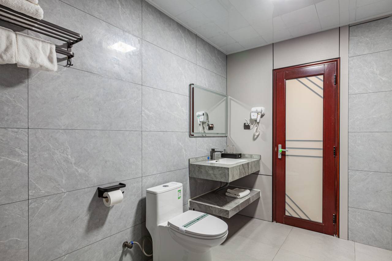 房间很整洁,现代简约设计令人耳目一新。回归核心主题,床睡着很舒服,疲惫一扫而空。卫生间还有一次性马桶垫,点个赞。每一个前台服务都很好很热情。可以说是无微不至。服务超好,隔音情况:虽然靠路边,但是非常安静,我平时睡觉很轻,但是在这里完全听不到外面的声音,非常赞地理位置:离高速路口很近很方便,配的拖鞋和洗护用品都不错,很满意的一次入住体验,强烈推荐!