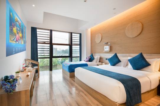 免费升级了房间,还不错,离乐园近,高速口近,服务贴心、环境优雅、宾至如归等核心优势。具体如房间整洁、设施齐全、早餐丰富、服务细致周到等。地理位置便利,性价比高,隔音效果好,亲子房温馨舒适,性价比超高。