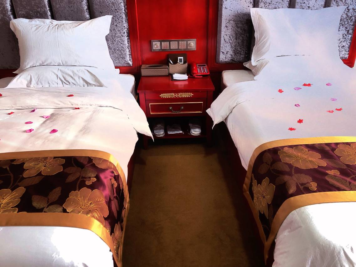 房间很有地方特色,感觉有点藏区的色调和搭配。 房间干净,地理位置也方便出行。 酒店出来后两三分钟就可以上高速路!