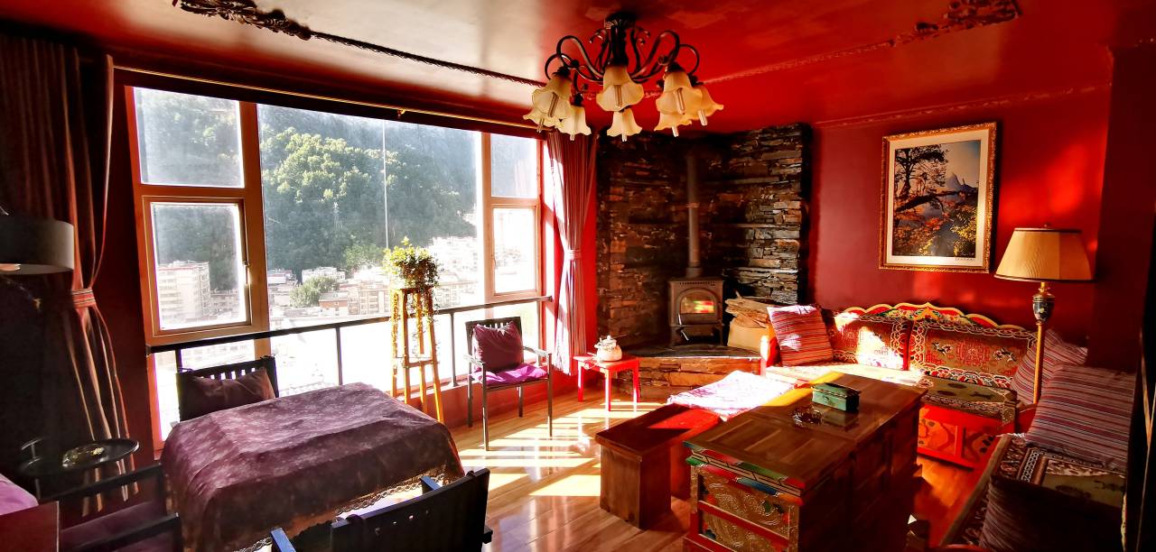 民宿式酒店,位于康定老城,可拍摄银河星空,一览康定跑马山、贡嘎雪山、康定老城胜景,24小时中央热水,茶餐厅壁炉取暖并供应地方特色生态餐饮,客房整洁、通风、舒适并配置电暖气和电热毯,公共区域宽敞明亮,环境优美,富有地方特色,特别适合打卡拍摄。是一家小资情调浓郁的庄园式民宿。步行去商业中心只需十分钟,民宿主人也会为入住的客人提供免费的旅游咨询服务,总之喜欢这种情调的客人不会失望。