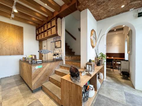 民宿共3层,2-3层全部为大床房。1层为餐厅,经营烤肉与自家烘焙的咖啡。