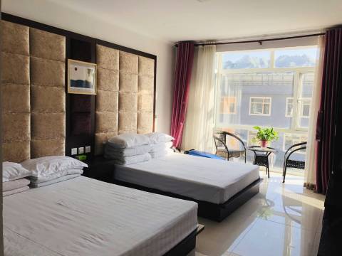 房间空间很大,床品干净整洁,酒店在七彩小镇的里面,这条街很热闹离火车站很近,周边有条浅浅的小河水很清澈。酒店离漂流的地方开车十分钟。