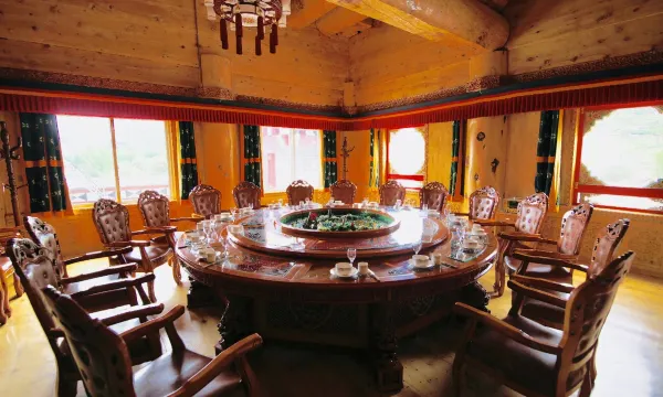 道坞酒店是一家以藏族文化特色为主题修建的精品酒店,历时6年精心打造,全酒店以全实木手工浮雕与独有的藏式彩绘相结合,无论是从整体外观还是内部结构,都无处不在流露着浓郁的藏族风情。