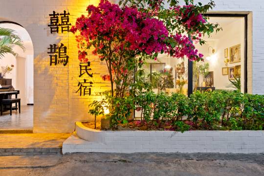 民宿建筑装饰为法式浪漫装修风格。大鹏所城景区由大鹏所城、东山寺、较场尾海滩三部分组成。囍鹊民宿位于大鹏所城东门外20米,漫步5分钟可达东山寺游览,走路10分钟可至沙滩嬉戏。古城景色山野风光尽收眼底,设施齐全环保,环境清新雅致。24小时热水、独立卫生间、空调、一次性洗漱用品等应有尽有,床品每客更换、清洁,每日都有专职阿姨打扫房间/公共空间,保证卫生条件,每间房皆设置有投影仪,大部分房间配置有浴缸。附近有绿植婆娑风格简约的咖啡厅,提供美味丰富的简餐及饮品;距离所城东门内传统美食“鹏城饭馆”(以本地客家菜为主,景区必去餐馆)近在咫尺;周围海鲜、客家菜、清吧、小店亦挺丰富。