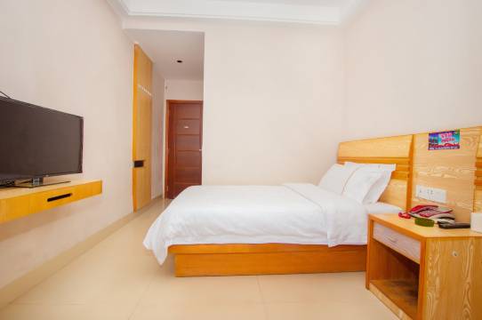 在该店住了一晚,①前台服务态度很好,配合“先看房型,后入住”和房间变更,有问必答。②卫生良好,一进X房间,床上用品散发出“太阳”的味道。③服务设备齐全,摆放整齐。④环境,该店地处老城这,周边人群密集,购物方便。距“三元白塔”、“雷州博物馆”约1公里。⑤不足: a,或许是游人少的原因,在老城区走一圈都找不到吃正餐的饭店。b,该店附近居民居住密集,还有两所学校,早中晚高锋期,街道堵的一塌糊涂。c,卫生间卫生有待改进。