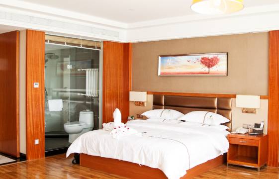 因为要带宝宝去方特欢乐世界玩,从携程上预订了两晚的这家宾馆,去的时候提前和前台确认了免费的接送站服务,我们刚到站,司机师傅就打来电话已经在出站口等我们了,七座的车子很干净,司机师傅也很热情;到宾馆很快就办理了入住,工作人员很热情的把我们带到了预定的房间,我们定的是大床房,床品很干净;早晨带宝宝去吃了免费的自助餐,虽然菜品不是很多,但味道都不错;当我们咨询前台工作人员在哪里打车去方特一期时,前台工作人员说不是太远,可以让宾馆的司机师傅免费送我们去方特一期,回宾馆时坐公交就到了。这次入住的体验感蛮舒服的。