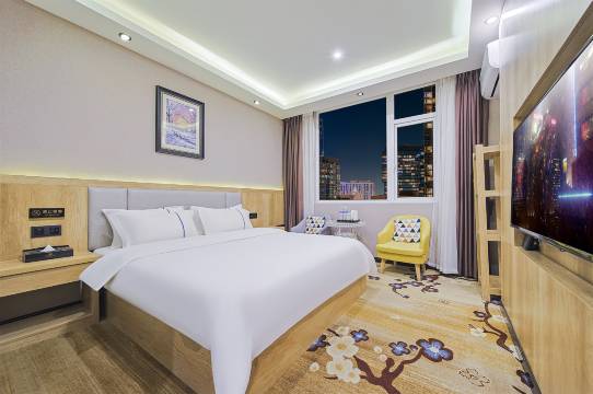 房间非常满意,卫生干净,门口有超市吃的,周围热闹我还比较喜欢,前台很好,周围有什么玩的讲的非常清楚,一次不错的出行,下次路过还会选择她们酒店。