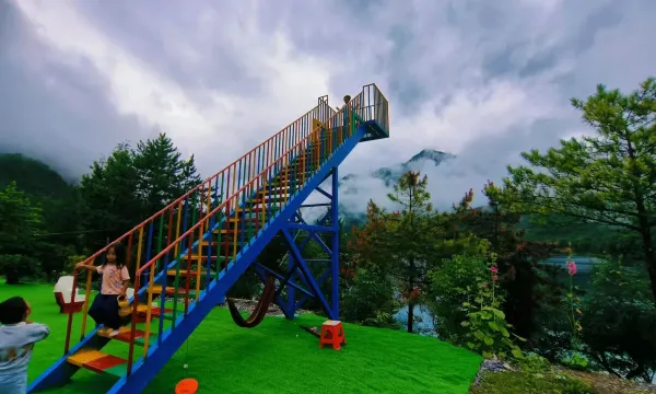 文县天池松茂山庄位于文县天池风景区内,近天池水面,有各种各样的池景房包含住宿餐饮娱乐棋牌。网红天梯.网红鸟巢.天空之境.网红帐篷.等.....拍照打卡设施,’