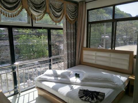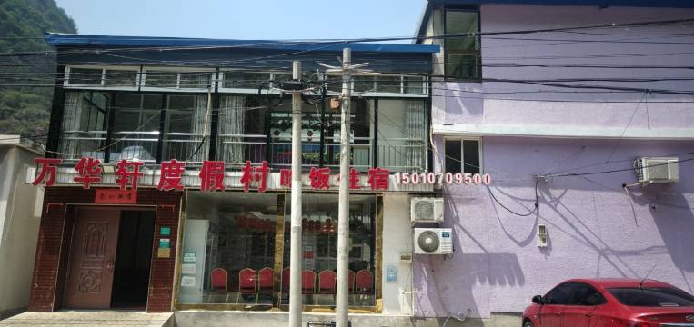 北京万华轩度假村黄松峪乡梨树沟村,新村依山傍水。这里春天:娇艳动人、漫山遍野的花朵宛如婀娜多姿的少女夏天:满目青翠,雨后云雾缭绕,仿佛置身于仙境一般,这时空气凉爽宜人,平均气温较市内低5-6度,是消夏避暑的好地方 秋天:各种有机水果挂满枝头,满山遍野,硕果累累 冬天:白雪皑皑,大山深处几缕炊烟在空中萦绕,成群的鸟儿在房前屋后叽叽喳喳的叫个不停,是您远离喧嚣的都市,尽情放松休闲的好地方。客房干净、卫生,具有基础性设施,住宿环境舒适。