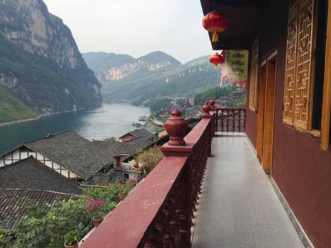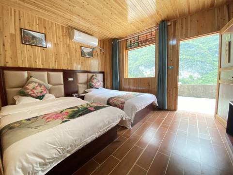 还可以吧,当然和酒店没有办法比,不过也可以住,店是一对夫妇开的,很热情可以提前入住。可以去她们那儿买船票,¥90比去景区买便宜很多。位置挺好的,也很好找。就是五一节去有点贵。下面的图片是在客栈二楼拍的,风景很好👍