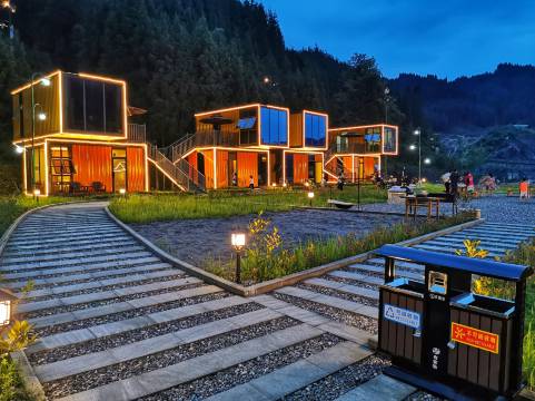 集装箱式酒店,配置齐全;置身大自然,听小虫呢喃!老板挺热情、实在,有配套娱乐设施!最主要的是在瓦屋山景区门口!